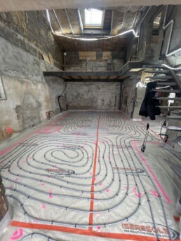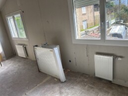 Cette installation de pompe à chaleur air-eau repose sur une solution performante et économique, idéale pour produire de la chaleur de manière durable. Elle alimente à la fois un plancher chauffant dans les pièces de vie et des radiateurs à l’étage, assurant une diffusion de chaleur adaptée à chaque espace.