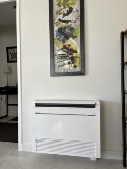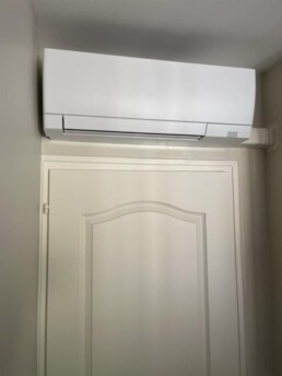 L’unité murale installée en hauteur assure une diffusion homogène de l’air tout en restant discrète et peu encombrante.
